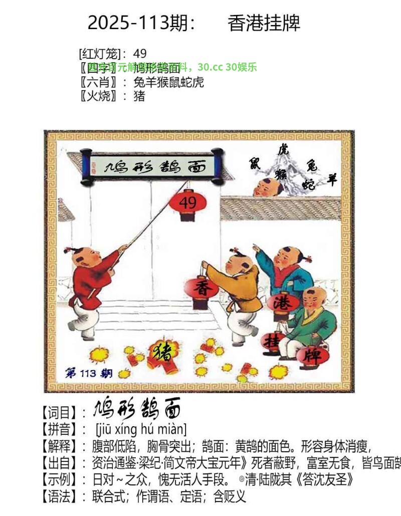 解释:腹部低陷,胸骨突出;鹄面:黄鹄的面色。形容身体消瘦
